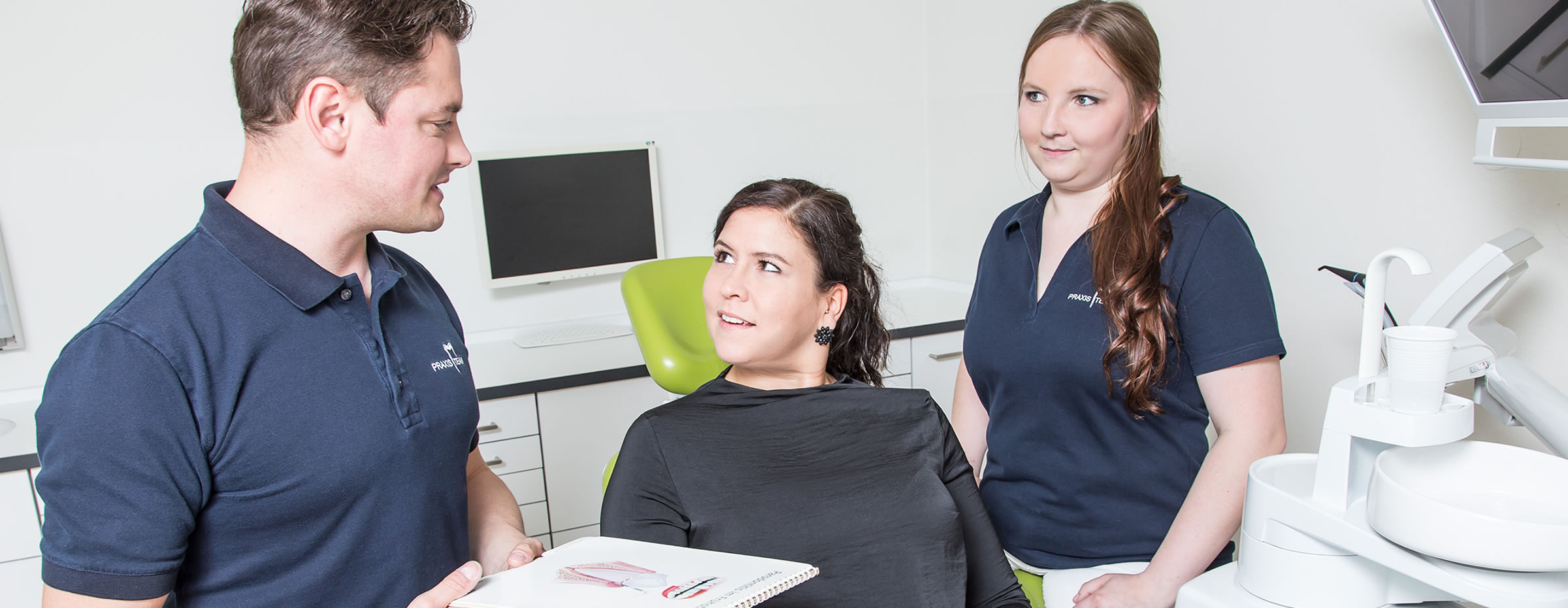 - Im Rahmen der genauen Untersuchung des Zahnbestandes eruiert der Zahnarzt seine genauen Anforderungen an die Versorgung.